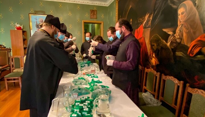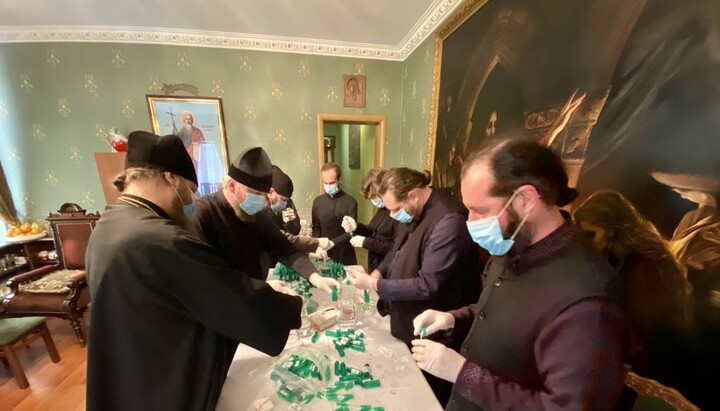 The monks of St. Elijah’s Monastery making antiseptic. Photo: eparhiya.od.ua The monks of St. Elijah’s Monastery making antiseptic. Photo: eparhiya.od.ua