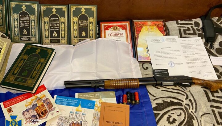 In the premises of the Kherson Eparchy, SBU officers found "a rifle without relevant permits, a flag and a golden coat of arms of Russia".