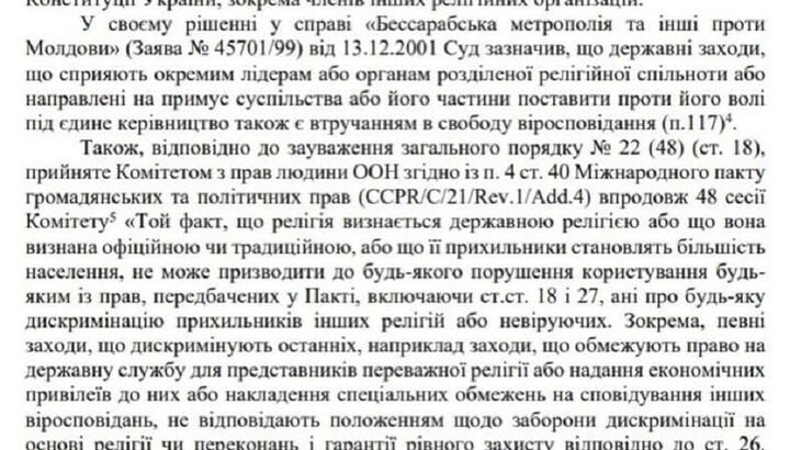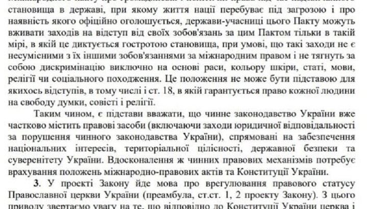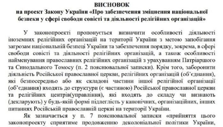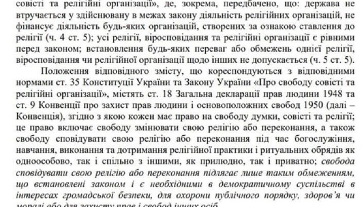 Referring to the Constitution, the Legal Department of the Rada noted that "Ukraine is a secular state, which excludes the possibility of establishing any advantages for certain religious organizations at the legislative level."