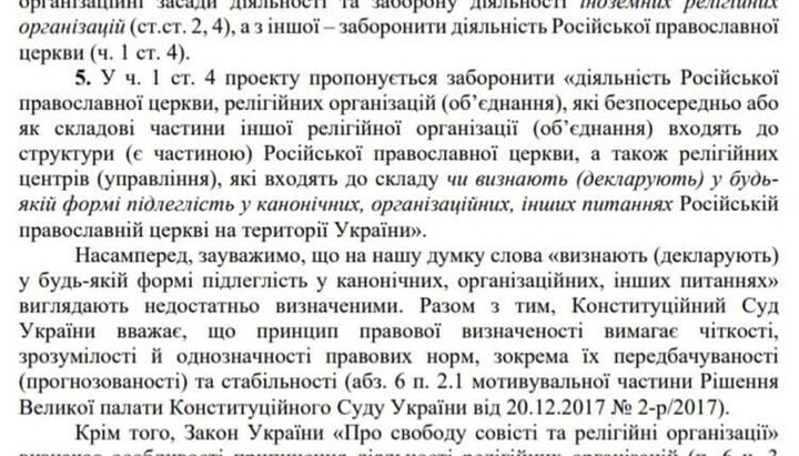 “The proposed monopoly of a religious organization on the term ‘Orthodox’ is insufficiently balanced and contains signs of a violation of Art. 35 of the Constitution of Ukraine, including the rights of members of other religious organizations,” say the Expert Opinions of the Main Legal Department.