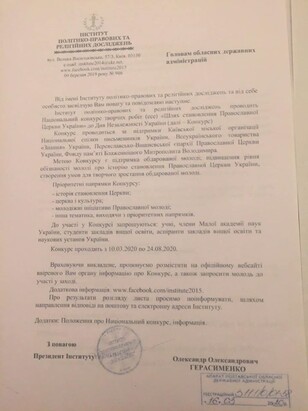 Vladyka noted that this is not a single case: information on the competition is available on the websites of a number of regional and district state administrations and state higher educational institutions, “besides the fact that the organizers of the event openly indicate direct support of their initiative from one of the structures of ‘OCU’.”