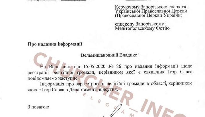 The Churcher drew attention to the strange response of the employees of the Zaporizhzhya Regional State Administration who were unable to reply to this request.