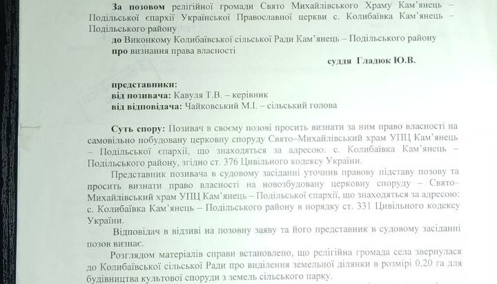 It is worth emphasizing that back in 2005, the Economic Court of the Khmelnytsky region recognized the right of ownership of the UOC community to the St. Michael's Church in the village of Kolybayivka.