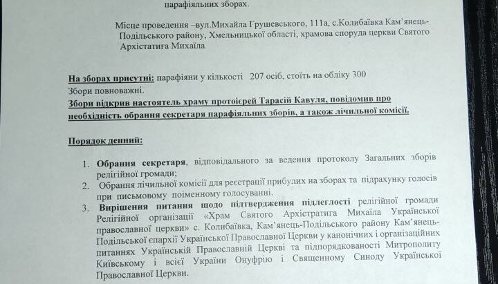 The authorities of the Khmelnytsky region illegally re-registered the religious community of the Ukrainian Orthodox Church in the village of Kolybayivka, Kamyanets-Podilsky district, in favor of the OCU. Archpriest Tarasy Kavulya, rector of the Archangel Michael Church, told the UOJ about this.