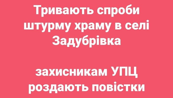 On March 12, 2023, supporters of the OCU attacked the Church of Archangel Michael in Zadubrivka, Chernivtsi region, and subpoenas were served to the defenders, as reported on the Facebook page of the church in Zadubrivka.