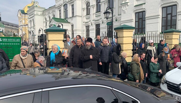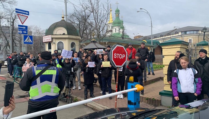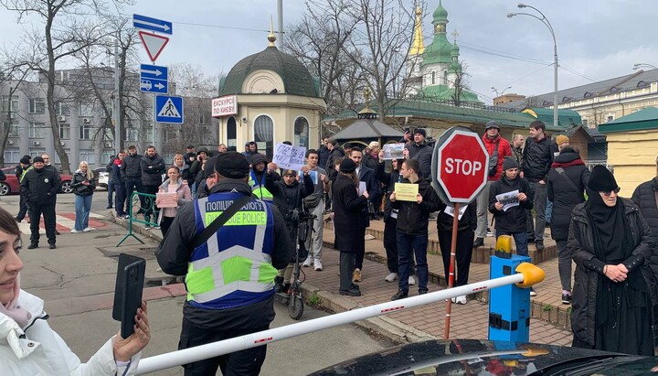 Parishioners of the Kyiv-Pechersk Lavra have blocked the approach to the Church of St. Agapitus of the Caves, reports UOJ correspondents.