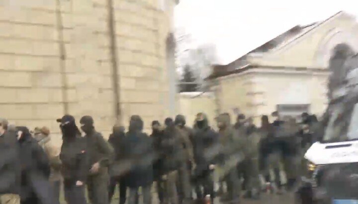 A video shows a column of nationalists lined up near Kyiv-Pechersk Lavra. After some time, they were dispersed by police. Some of the activists dispersed on their own.