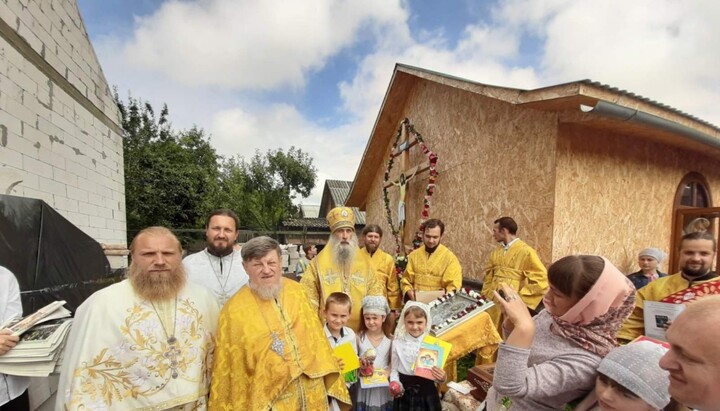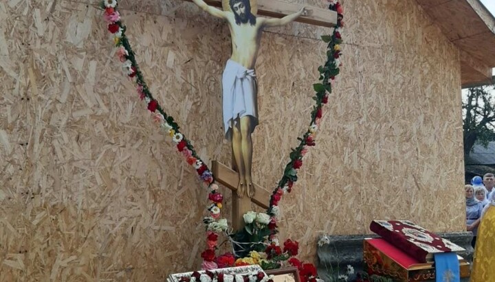 The UOC hierarch also consecrated a worship cross installed near the temporary temple.