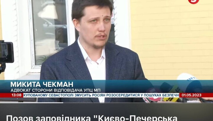 “On May 1, 2023 Channel 5 distributed a video ‘Claim of the Kyiv-Pechersk Lavra Reserve against the UOC-MP: the preparatory meeting was postponed to June 5’,” the lawyer said on his Telegram channel. “Throughout the entire video recording, they call me as a lawyer ‘a representative of Moscow priests, ex-owners of the Kyiv-Pechersk Lavra.’ I note that I, Nikita Chekman, am a representative of the Holy Dormition Kyiv-Pechersk Lavra (monastery) of the Ukrainian Orthodox Church (UOC), which is the Respondent in this case, not the ‘UOC-MP’.”