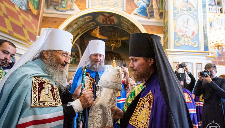 “Today, during the Divine Liturgy, through the prayers of the archpastors and faithful children of the Ukrainian Orthodox Church, you received a great spiritual gift – the grace of the episcopacy,” said His Beatitude Metropolitan Onuphry. “From this day on, you will bear a special responsibility not only for yourself as a monk and priest, but also for the flock entrusted to you. (...) For a long time you performed your pastoral ministry in Kyiv theological schools. In monasticism, you bear the name of their graduate, Saint Theodosius of Chernigov, and today, by God's Providence, you are going to serve on the territory of the ancient diocese where your holy patron had his ministry and where you used to be the abbot of the monastery. As you know, strict evangelical justice in relation to the clergy and his flock distinguished the saint, but at the same time, he showed deep sympathy and Christian mercy to all who came to him. Pray to Saint Theodosius and follow his example of a good shepherd in everything."
