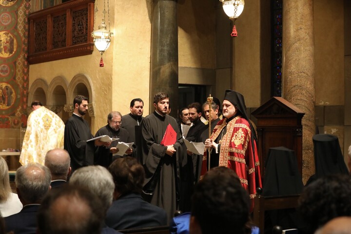 The publication also notes that photos published by the Greek Orthodox Archdiocese of America barely show any faithful attending the vespers and Archbishop Elpidophoros is depicted "with the tired, dark and sad face".