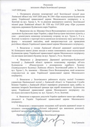 On August 6, militants from the Lviv National Corps demolished the fence around the priest's house with hammers, and a week later, unknown assailants attacked a children's store in Zolochiv, owned by a UOC parishioner.