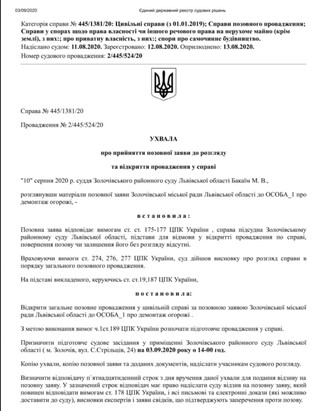 On September 3, 2020, the Zolochiv District Court began considering the claim of the Zolochiv Mayor's Office, which demands to demolish the fence around the house of the UOC priest Maksim Yoenko, NGO Public Advocacy reports.