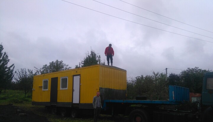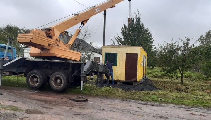 Left without their church and without the status of legal entity, the parishioners of the UOC in Budiatychi bought a metal container to be converted into a temporary church. A cold snap is approaching, and people are no longer able to gather for prayer outside, as they have been doing for about a year and a half. The carriage was installed on a plot of land opposite the temple, with the permission of the owners. A dome and a domed cross were also installed.