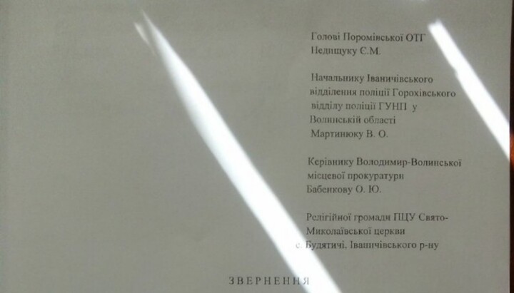 Adepts of the OCU fraudulently collected signatures to prohibit the believers of the UOC from praying in Budiatychi.