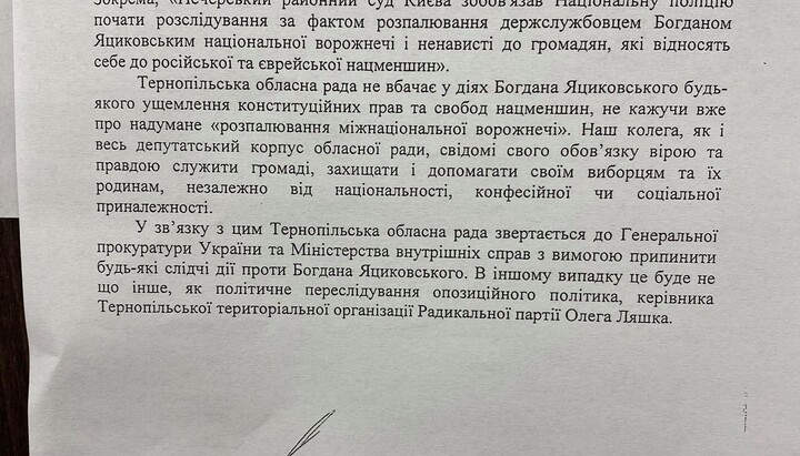 Earlier, the UOJ wrote that the Ternopil deputy called on the Jews to be hanged near the church taken from the UOC.