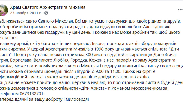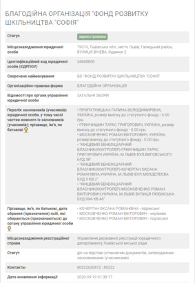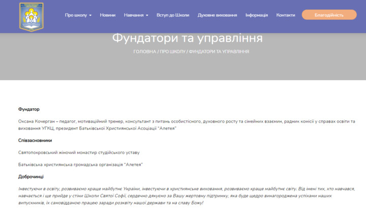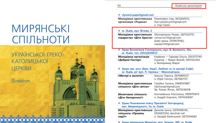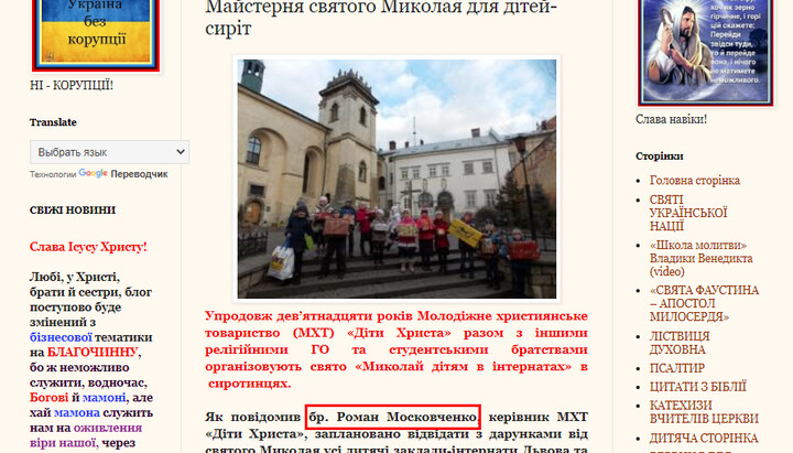 After analyzing a number of resources, including the catalog of parish organizations under the jurisdiction of the Lviv Archdiocese of the UGCC, Alexander Voznesensky established that we are talking about a specific youth organization "Children of Christ", founded back in 1986 at the Uniate monastery church of Archangel Michael in Lviv and operating under his patronage. He also pointed out that at the address of the organization "Children of Christ" there is a private Catholic school of St. Sophia, in which Moskovchenko worked since 2004, and on its official website it is noted that it is completely under the control of clerics and hierarchs of the UGCC.