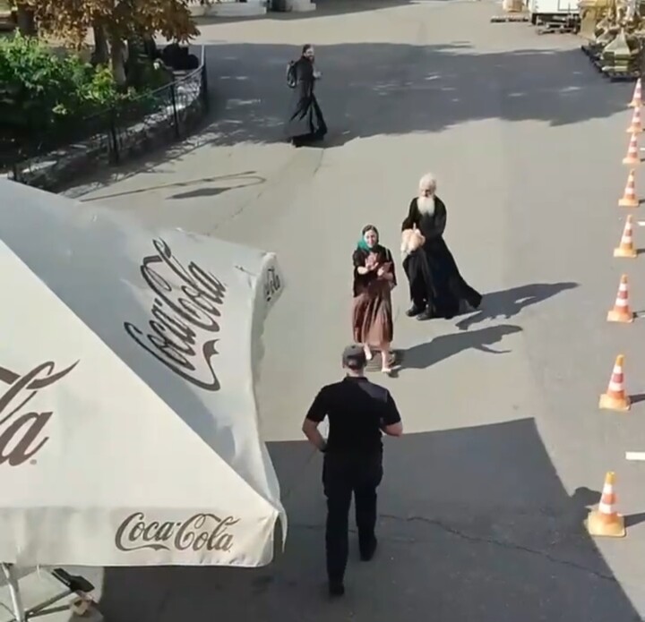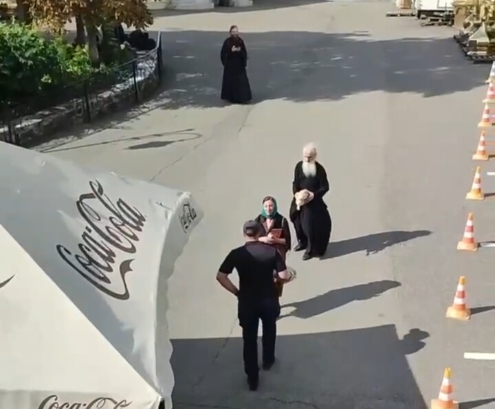 The lawyer of the Kyiv-Pechersk Lavra, Archpriest Nikita Chekman, published a video on his Telegram channel as a monk of the Lavra, passing by the sealed building, took bread from the hands of a woman and threw it to the hungry defenders of the Lavra.