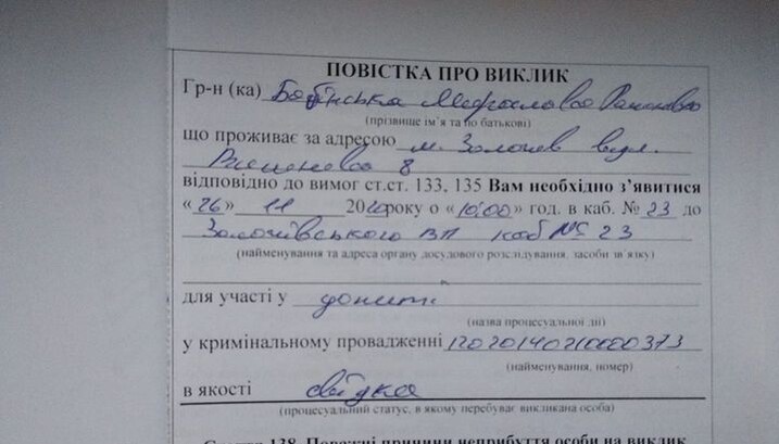 The activists who took part in the "veche" at the UOC priest's house in Zolochiv received summons for interrogation.