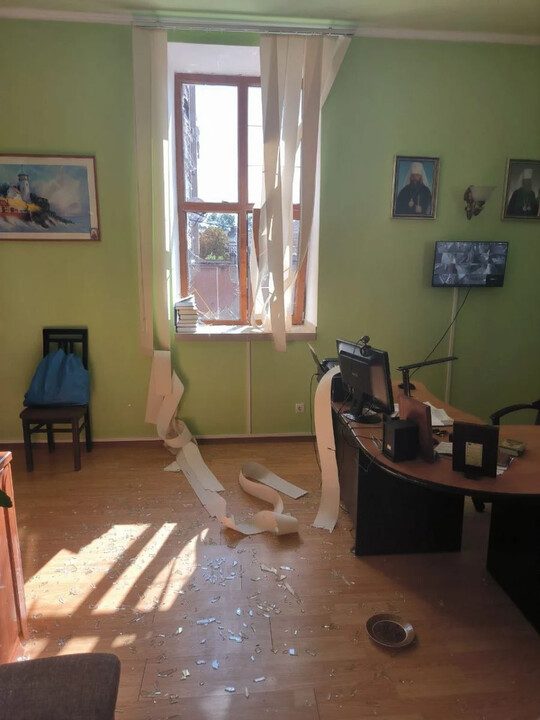 St. Nicholas’s Church and the building of the Kryvyi Rih Eparchy’s Office of the Ukrainian Orthodox Church had their windows smashed and facades, doors and interior decoration damaged.