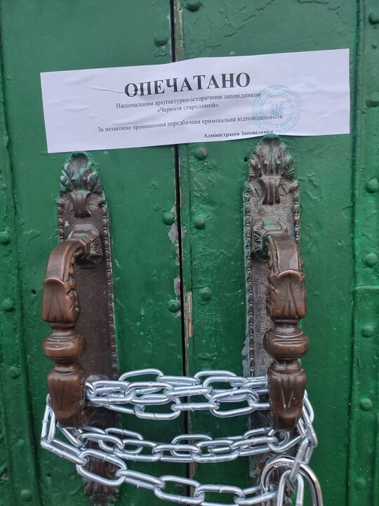 On 5 October 2023 at about 6:00 am, representatives of the National Architectural and Historical Reserve "Chernihiv Ancient" accompanied by law enforcement officers sealed the Trinity Cathedral of the Ukrainian Orthodox Church in Chernihiv, reports the rector of the cathedral, Secretary of the Chernihiv Eparchy of the Ukrainian Orthodox Church Archpriest Ihor Pidan.