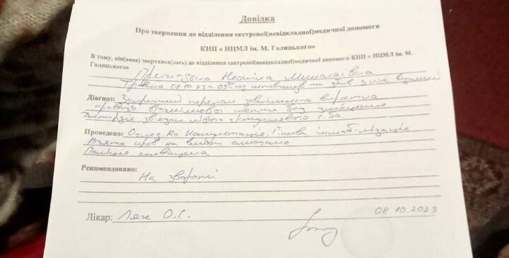 Activists of the OCU, who on 8 October 2023 attacked UOC believers near the Trinity Church in the town of Nosivka, Chernihiv region, broke the leg of an elderly woman, reports the Telegram channel dozor_kozak1.