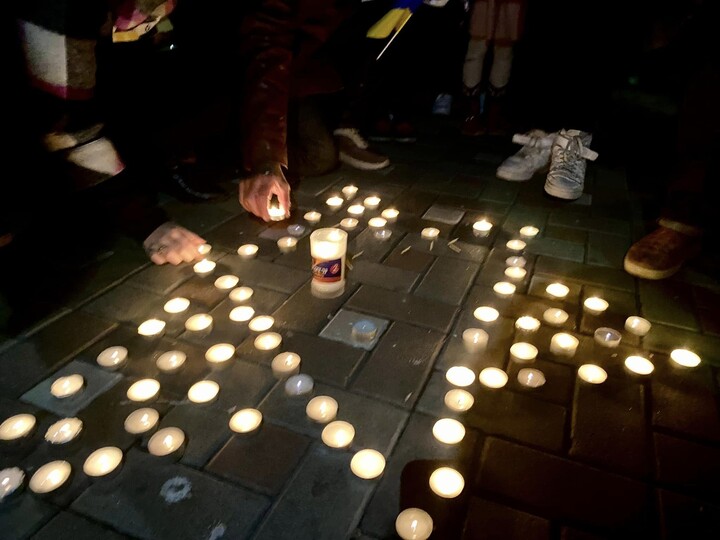 After the collective prayer, participants of the event lit candles arranged in the shape of the Star of David.