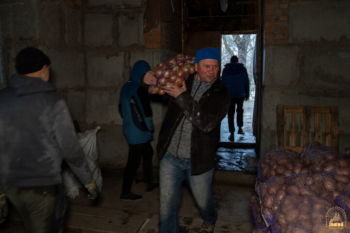 Orthodox believers of the Vinnytsia region transferred about 14 tonnes of canned food, cereals, raw vegetables (potatoes, beetroot, cabbage, etc.), as well as building materials - more than 4 cubic metres of boards and 250 square metres of corrugated board for roofs to the residents of the Lavra and refugees living in the monastery.
