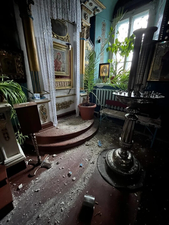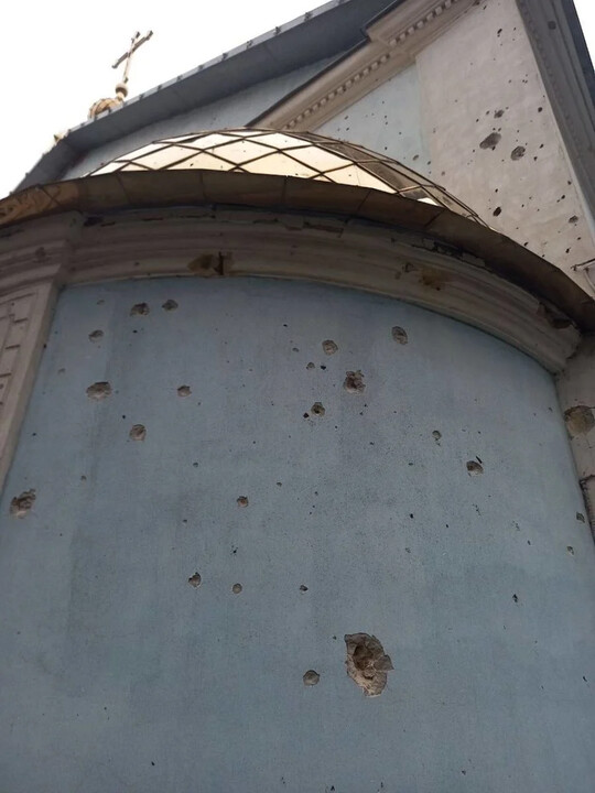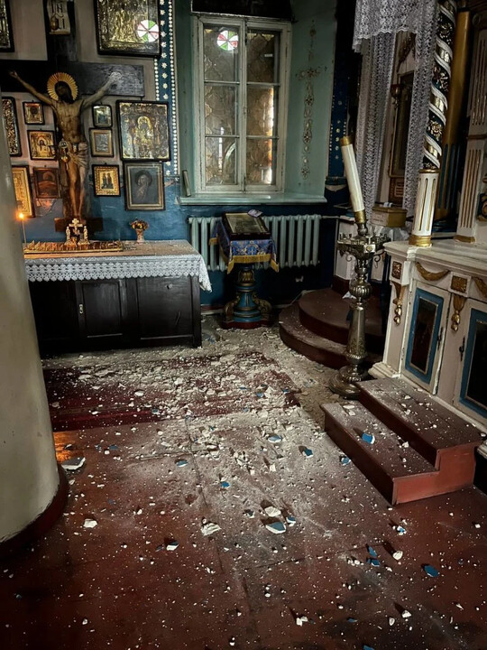 The walls of the Church of the Nativity of the Theotokos were hit by shrapnel, the altar part was damaged and windows were broken.