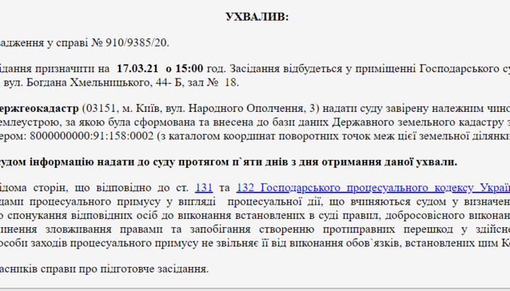 A preparatory meeting on the issue of the Tithe Monastery will be held on March 17 at the Economic Court of Kyiv.