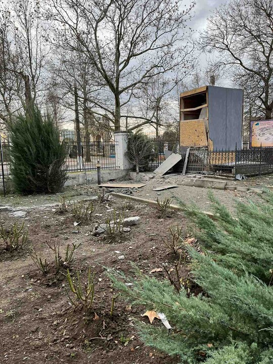 The facade and roof of the ancient Kherson Cathedral of the Great Martyr Catherine were damaged and windows were broken as a result of shelling.