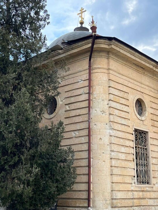 It is noted that as a result of a direct hit of shells on the Church territory, the facade and roof of the temple were damaged, and the windows were broken.