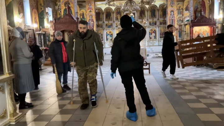 Windows were shattered, and the church dome was pierced by shrapnel. The rector-chaplain Archpriest Ilya Manita, who was seriously wounded on the front line while delivering aid to the Ukrainian Armed Forces soldiers in the summer, returned to his church on crutches.