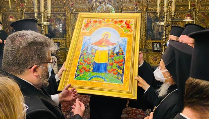 During a meeting with the head of Phanar, Ukrainian MPs congratulated him on his birthday and presented him with an icon in the Petrykivka style, painted in the colors of the Ukrainian national flag.