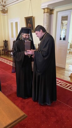 The priest of the Ukrainian Orthodox Church Archpriest Dimitri Popescu presented the representatives of the Romanian Patriarchate with memorial signs from the Chancellor of the UOC, Metropolitan Anthony of Boryspil and Brovary.