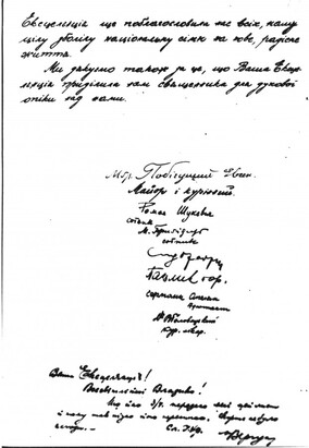 At the same time, not knowing whether we will be able to do this in a timely manner, we ask you, Your Excellency, to accept the sincere filial wishes of the merry feasts of Christ's Resurrection. May the Lord grant that this joyful Easter will become the majestic long-awaited Sunday end of our long-term suffering of our long, difficult nationwide "Great Lent" and that Your Excellency will bless us all, our national family for a new, joyful life. We also thank Your Excellency for giving us a priest for spiritual care over us.
