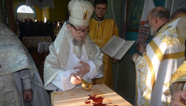Metropolitan Anatoly was concelebrated by Archimandrite Anthony (Griban), rector of the Holy Protection Monastery of the village of Velyki Tseptsevychi, Archpriest Nikolai Ivanichko, rector of Sts. Peter and Paul church in the village of Yasinets, priests of neighboring villages, as well as clerics of the Kyiv diocese.