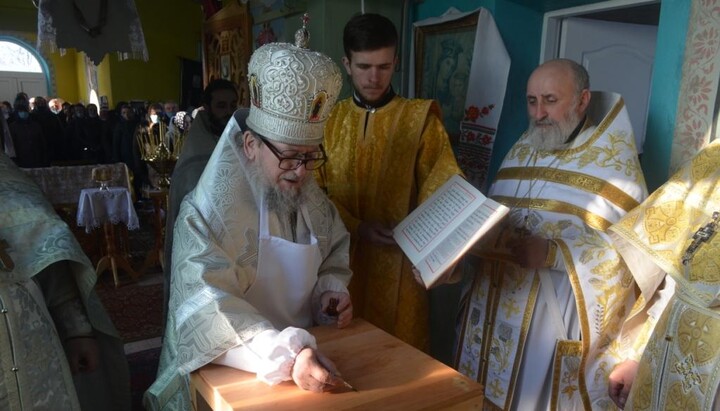 Metropolitan Anatoly consecrated the new throne and, with the blessing of His Beatitude Metropolitan Onuphry, laid the relics of the Holy Hieromartyr Vladimir, Metropolitan of Kyiv and Galicia, into the cross of the Holy See. After the consecration of the church, the first Divine Liturgy was performed in the hierarchical order.