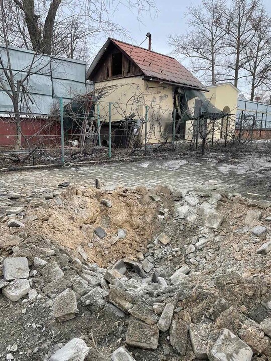 Crater from a Russian shell on the territory of the archbishop's residence in Kherson. Photo: pravoslavie.ks.ua Crater from a Russian shell on the territory of the archbishop's residence in Kherson. Photo: pravoslavie.ks.ua