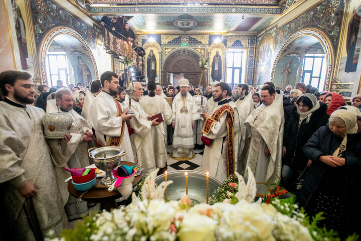After the liturgy, Metropolitan Anthony performed the Great Blessing of Waters, which was sprinkled on the believers present in the church.