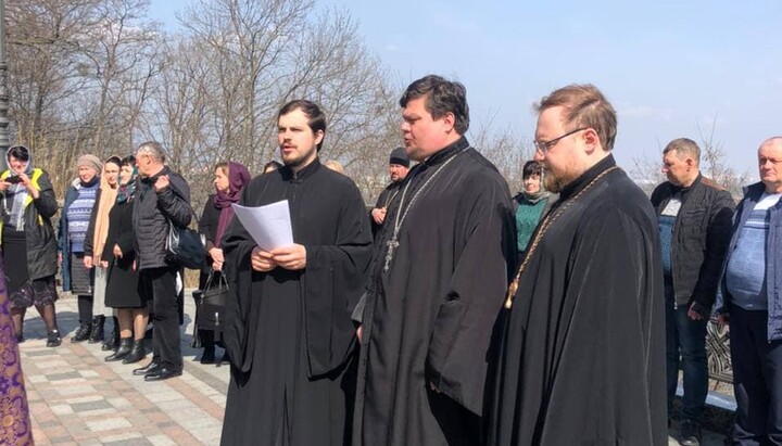 Nearly 100 believers of the Ukrainian Orthodox Church, who suffered from the aggression of schismatics, gathered on the Vladimir Hill for a prayer service.