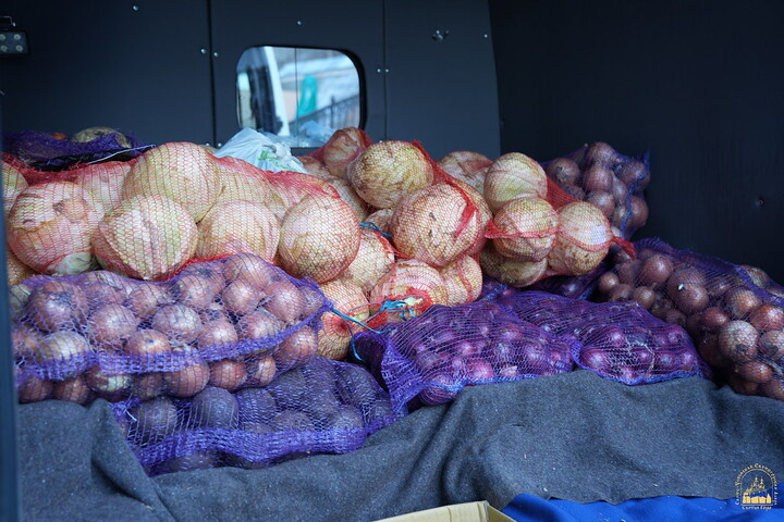 On the same day, the cargo from believers of the Dnepropetrovsk Eparchy was delivered to the Lavra: vegetables, fruit, flour, cereals, sugar, cheese, more than a thousand eggs, and half a ton of vegetable oil.
