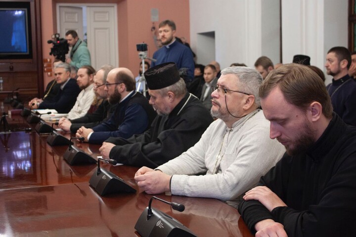 In particular, the round table "Church, society, state: dialogue for unity and victory" was attended by the UOC's outstaffed cleric Andriy Pynchuk, priests Volodymyr Sorokin, Volodymyr Davydov, Serhiy Barshay, Petro Zuyev, the cleric of the OCU Georgiy Kovalenko, the head of DESS Viktor Yelensky, philosopher Oleksandr Filonenko, DESS expert Andriy Smirnov, and the exarch of the Phanar Bishop Mikhail of Comana. The latter attended the meeting as an observer.