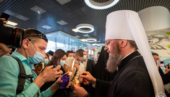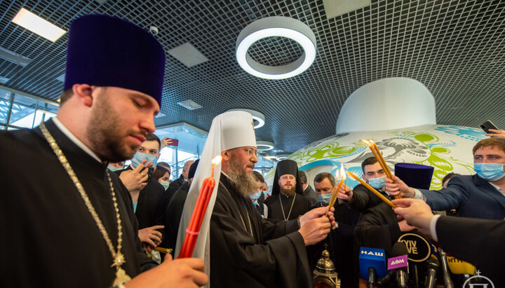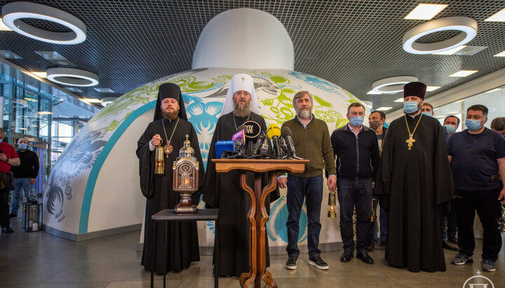 At the airport, members of the UOC delegation, led by Metropolitan Anthony (Pakanich) of Boryspil and Brovary, Chancellor of the Ukrainian Orthodox Church, shared the Holy Fire with journalists, believers, deans of the Kyiv diocese and the clergy.