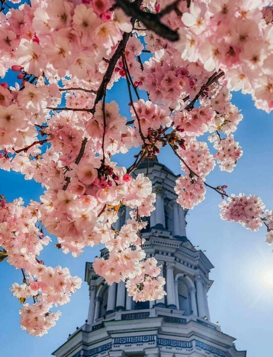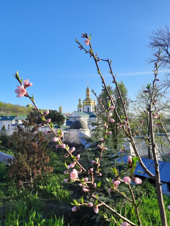 On April 10, 2024, various Kyiv communities shared photos and videos of the Kyiv-Pechersk Lavra in bloom. This was reported on the Save_Lavra channel.
