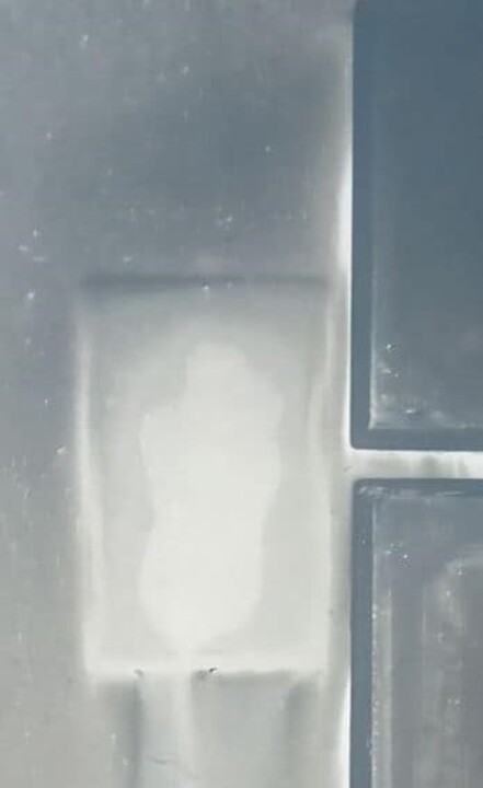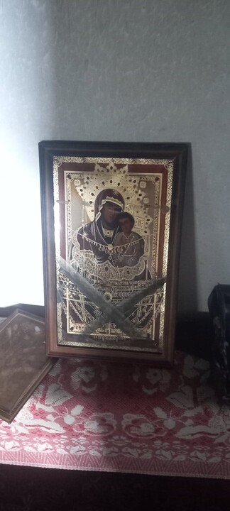 For over a year now, we have been serving in a small house (our church was taken away). On the night of April 27, 2024, there was a fire in this house. Miraculously, the house did not burn down completely. But what amazed people the most was that on the wall where the Sviatohirsk icon of the Mother of God hung, Her face was reflected, although there is no image on the reverse side of the icon. The icon itself miraculously survived as well – only the glass of the shrine melted. Thanks be to God for everything!"