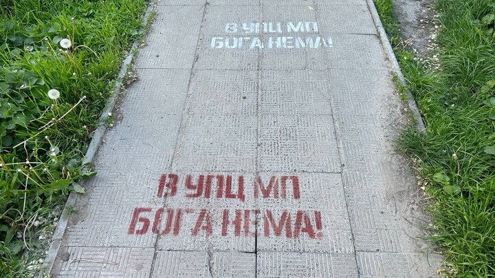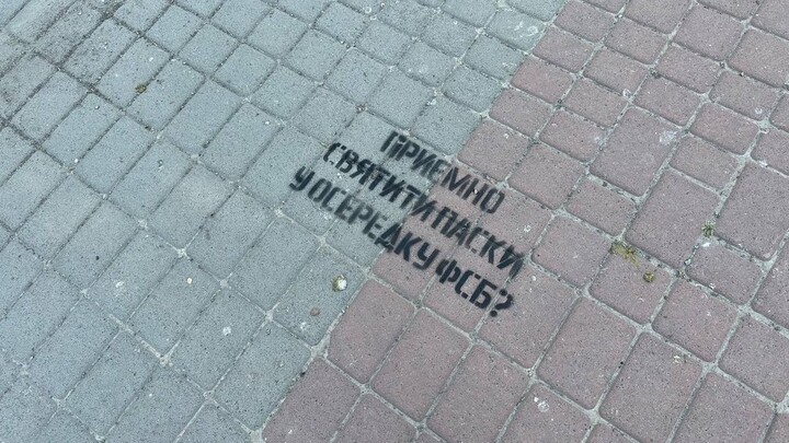 Radicals affixed posters depicting Patriarch Kirill of the ROC to the fence near the church, while on the asphalt, they painted slogans such as "UOC = FSB" and "Is it pleasant to consecrate Easter cakes in the FSB cell?" and similar phrases.