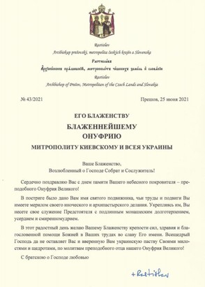 The Primate of the Orthodox Church of the Czech Lands and Slovakia, His Beatitude Metropolitan Rostislav, congratulated His Beatitude Metropolitan Onuphry on the Day of Heavenly Patron Saint Onuphrius the Great and wished the Primate of the UOC health and God's help in serving for the good of the Church, reports vzcz.church.ua.