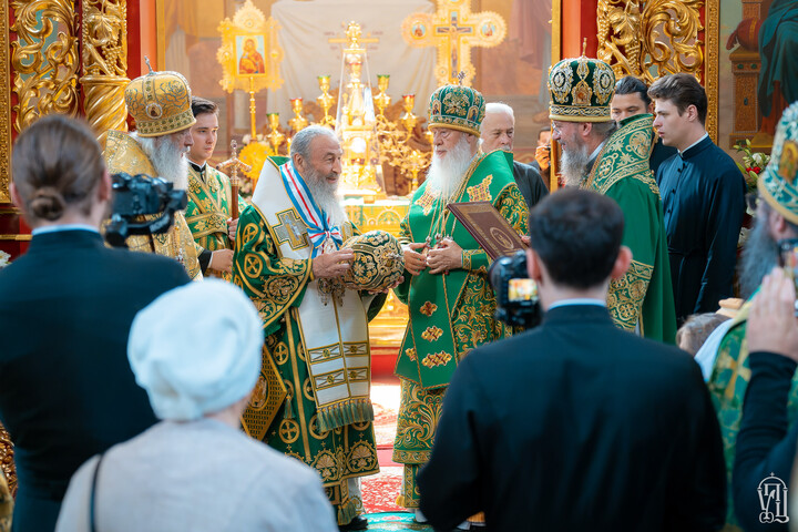 The Primate was concelebrated by the permanent members of the UOC Holy Synod: Metropolitan Agafangel of Odesa and Izmail, Metropolitan Sergiy of Ternopil and Kremenets, Chairman of the UOC Church Court Metropolitan Theodore of Kamianets-Podilskyi and Horodok, Head of the UOC Department for External Church Relations Metropolitan Meletiy of Chernivtsi and Bukovyna, UOC Chancellor Metropolitan Anthony of Boryspil and Brovary, and Chairman of the UOC Information and Education Department Metropolitan Clement of Nizhyn and Pryluky. Also present were metropolitans, archbishops, bishops of the Ukrainian Orthodox Church, clergy of the monastery, Kyiv, and guest clergy.