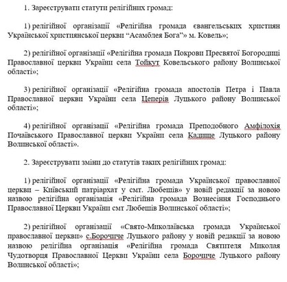 On July 8, 2021, the chairman of the Volyn regional state administration, Yuriy Pogulyaiko, signed order No. 406, with which he re-registered in favour of the OCU another UOC community in the region – the St. Nicholas parish of the Borochiche village of the united Lutsk region (former Gorokhiv region). The document was published on the website of the Volyn Regional State Administration.